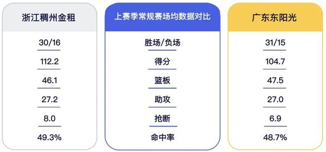 12月16日,广东东阳光将在CBA常规赛第2轮客场挑战浙江稠州金租男篮。两队在上赛季常规赛交手两次,互有胜负。